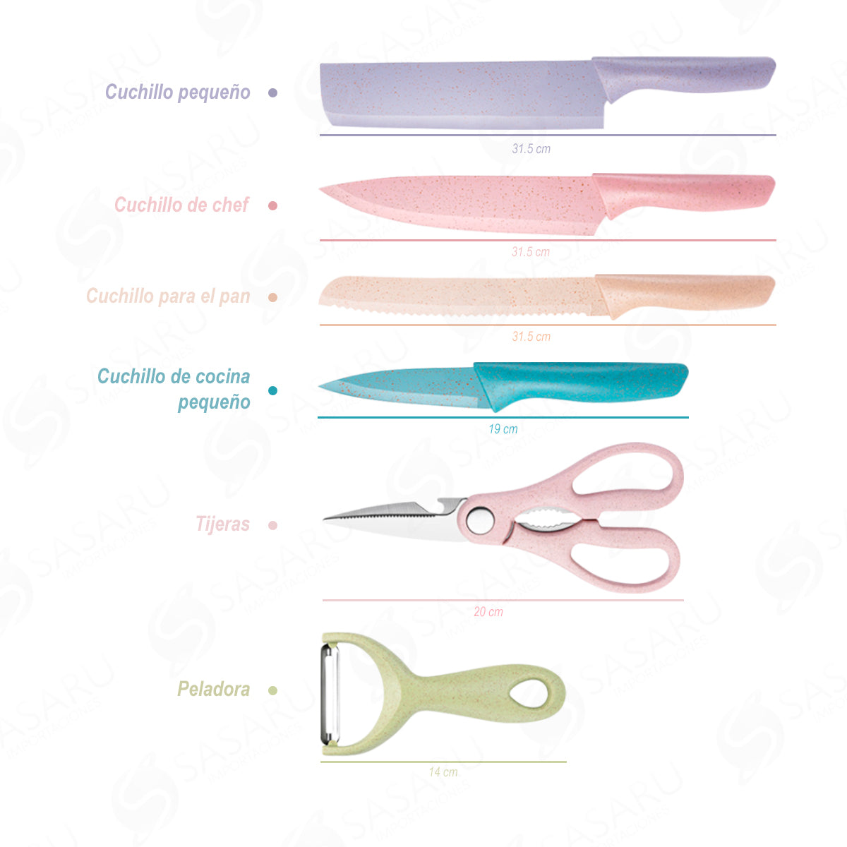 Kit de Cuchillos Recubrimiento Cerámica Colores Pastel