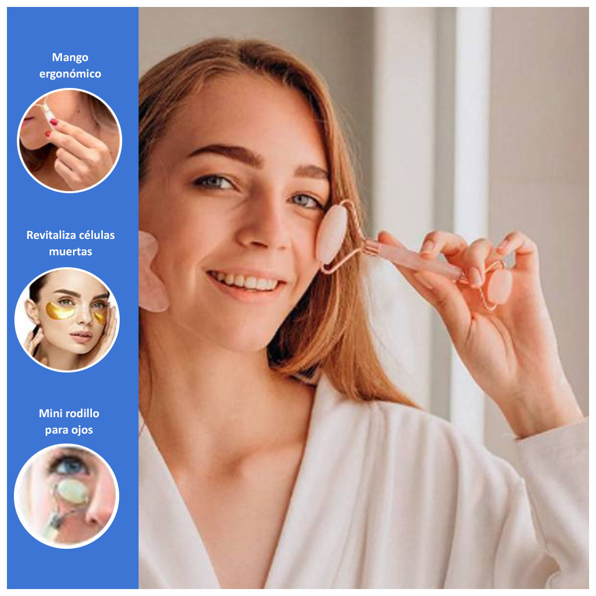 Rodillo Facial para Skincare Multiusos + Parches de Colágeno Rejuvenecedor para Ojeras