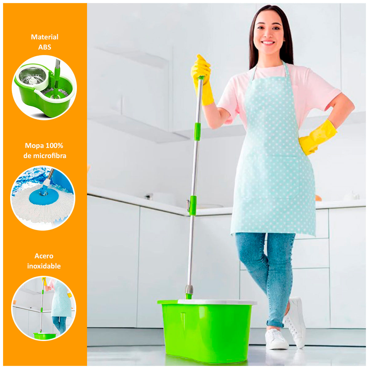 Mopa 100% de microfibra gran absorción - Longitud del mango: 105 cm aprox - Dimensiones del balde: 45 cm largo * 23 cm alto * 26 cm ancho - Cantidad: 7 litros aprox